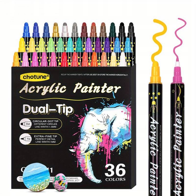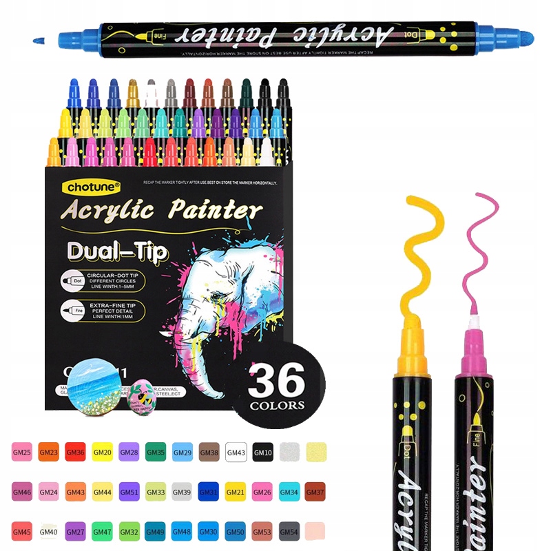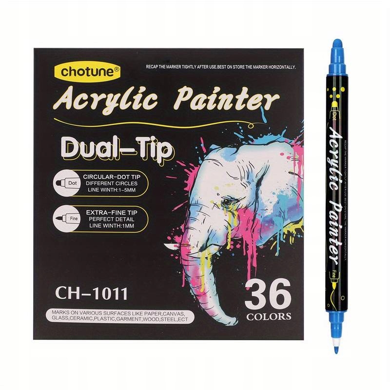 36 KOLORÓW MARKERY DWUSTRONNE AKRYLOWE WODOODPORNE PISAKI MAZAKI FLAMASTRY