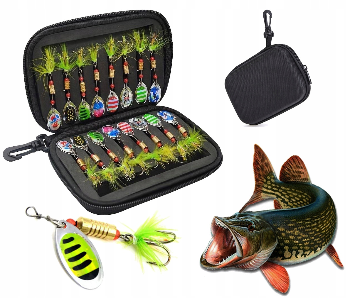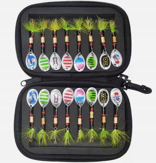 BLACHY BLASZKI BŁYSKOTKI OBROTÓWKI BLACHA NA RYBY ZESTAW ETUI WĘDKARSTWO