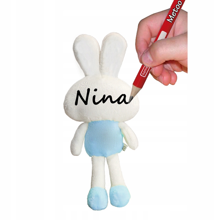 Przy zakupie w wiadomości do sprzedającego podaj tekst jaki ma znajdować się na króliczku. Dzięki temu Przytulanka stanie się niepowtarzalna.