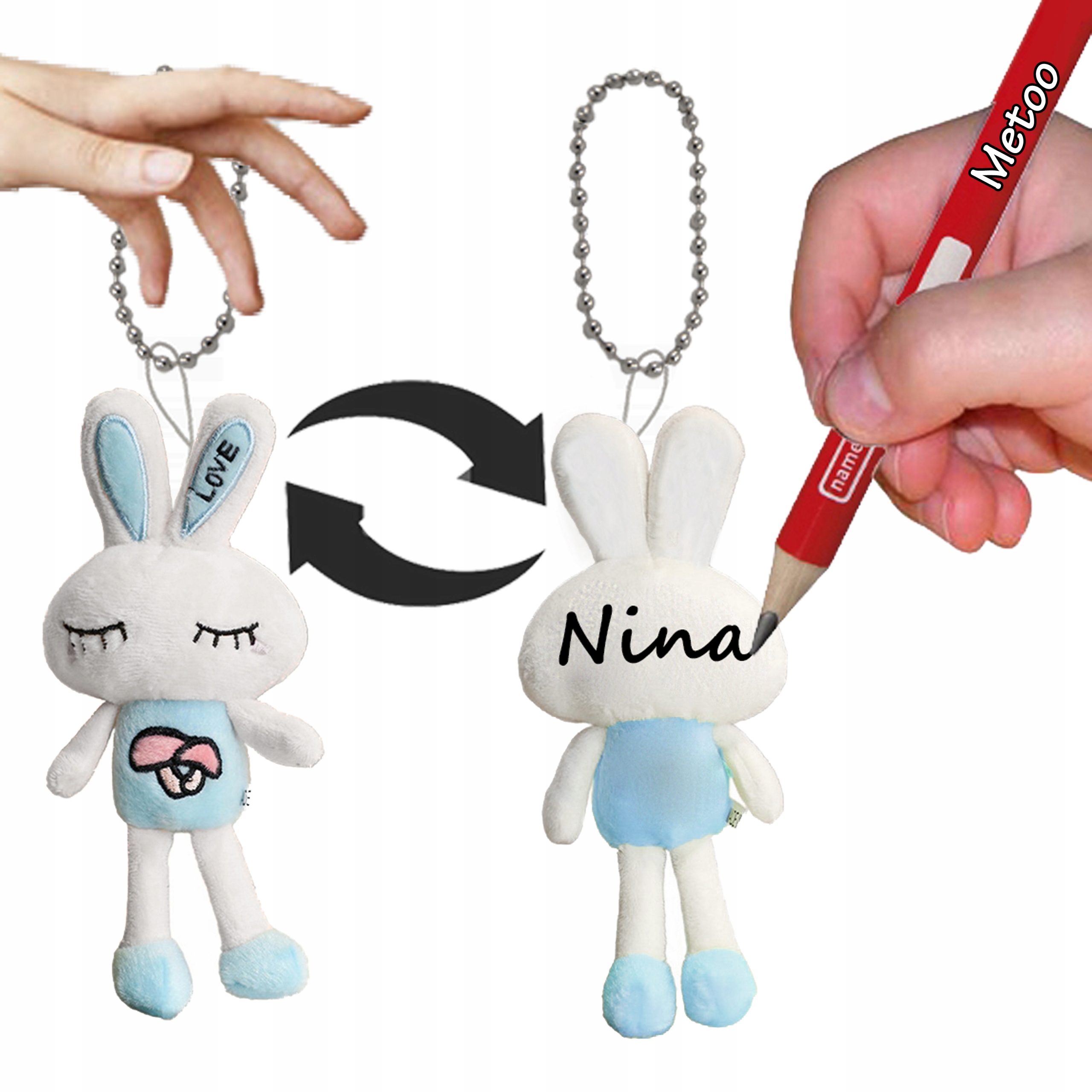 ORYGINALNY BRELOCZEK ZAWIESZKA Metoo Króliczek z personalizacją!