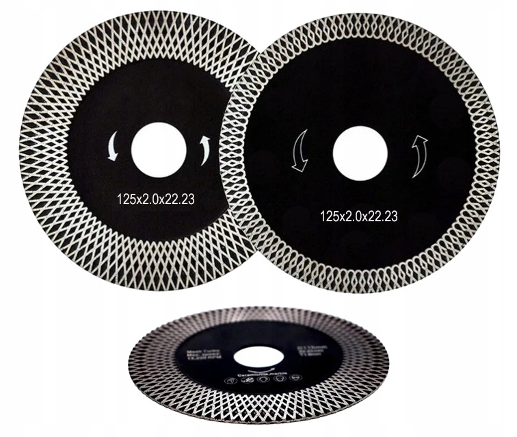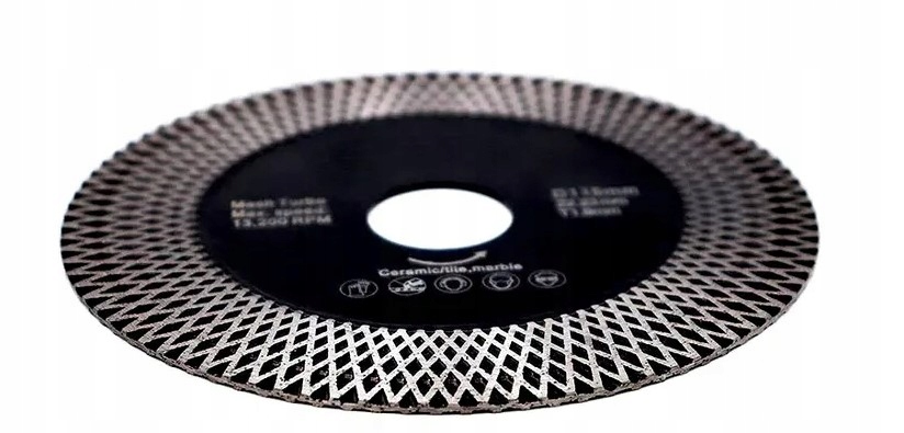 Tarcza o średnicy 125 mm z unikalnym, jednostronnie poszerzanym wieńcem diamentowym. Konstrukcja wieńca dodatkowo usztywnia tarczę sprawiając, że jest to idealny dysk do cięć pod kątem.