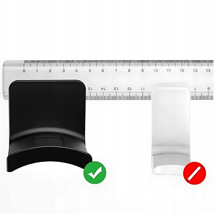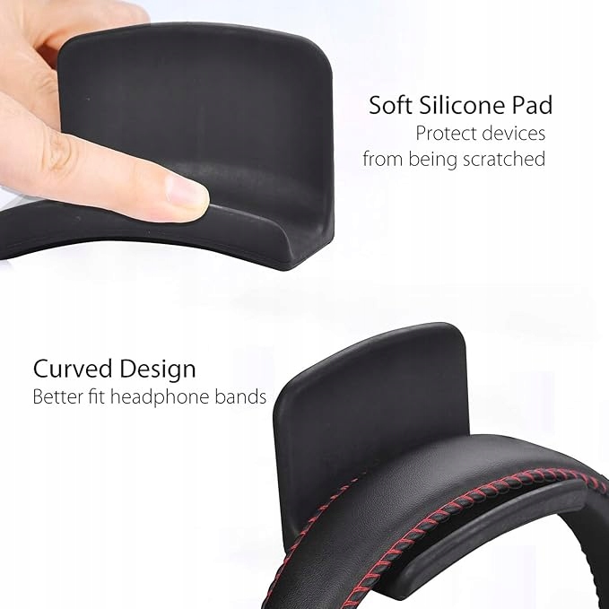 Ten uchwyt na słuchawki wyróżnia się solidną, zakrzywioną konstrukcją, która zapewnia stabilność i doskonałe dopasowanie do słuchawek, w przeciwieństwie do zwykłych uchwytów o płaskiej powierzchni, które mogą być niestabilne lub zbyt wąskie.