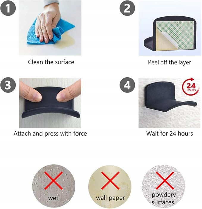 Uchwyt doskonale przylega do różnych powierzchni, takich jak: