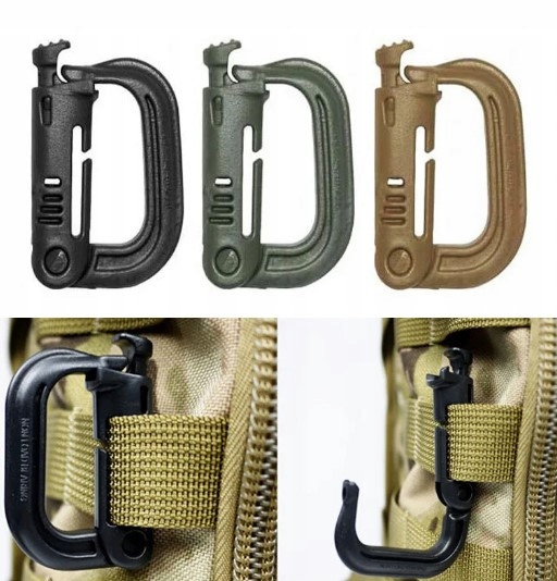 D-Ring KLAMRA ZPINKA KARABIŃCZYK SZEKLA ZAWIESZKA uchwyt do PLECAKA ZIELONA