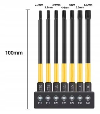 DŁUGIE BITY TORX KLUCZ KOŃCÓWKI DO WKRĘTARKI MAGNETYCZNE 100mm ZESTAW BITÓW
