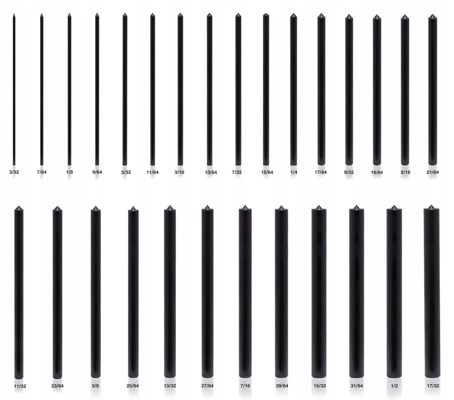 Zestaw stalowych trzpieni o różnych średnicach