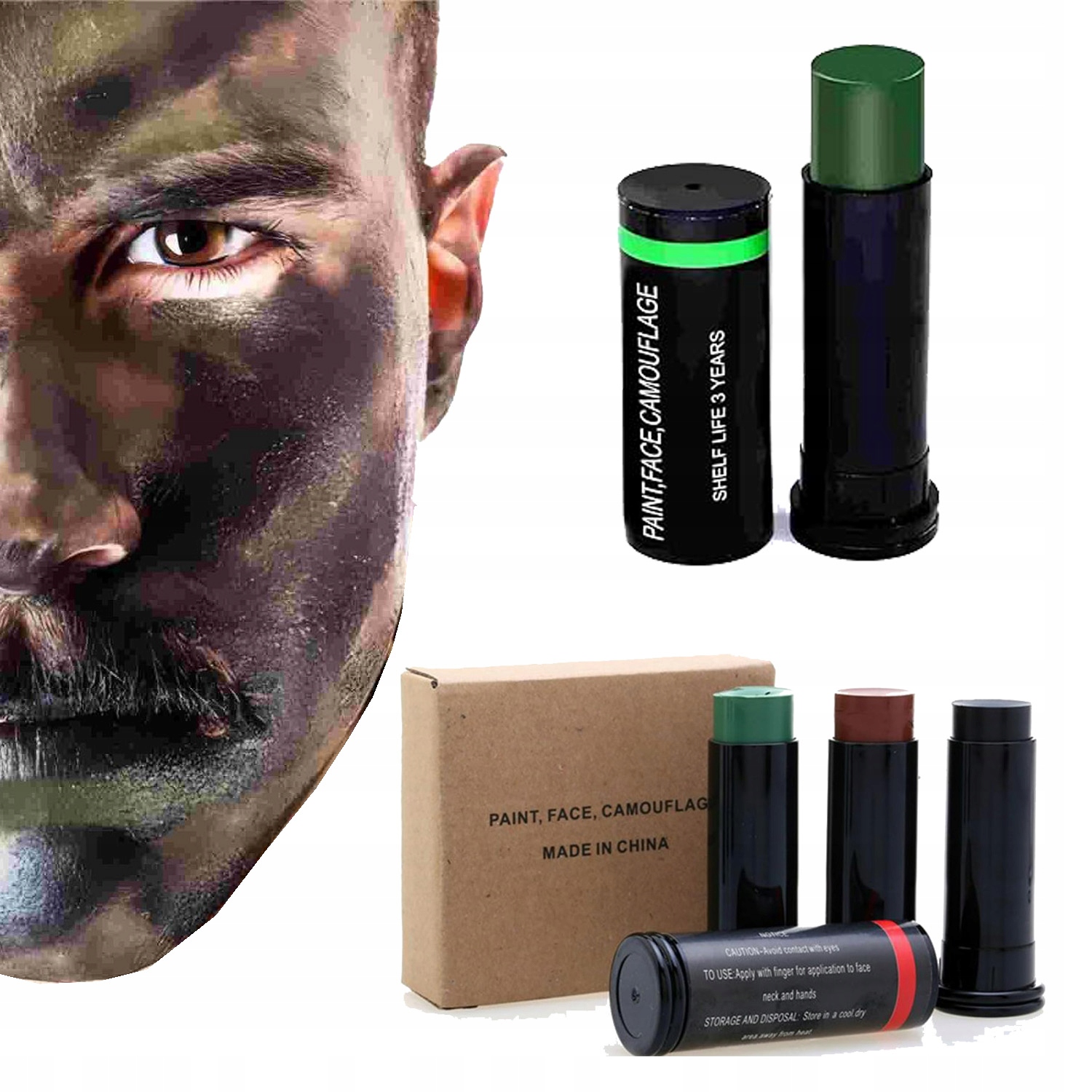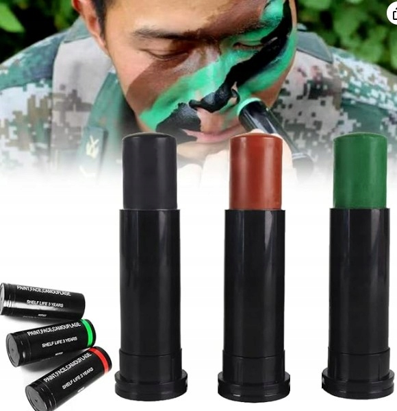 FARBY WOJSKOWA TAKTYCZNA 3 KOLORY DO KAMUFLAŻU ZESTAW SZTYFT CAMO ASG