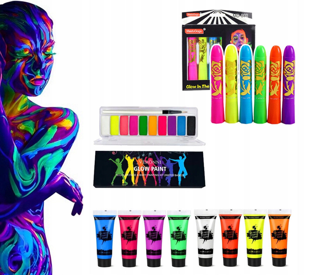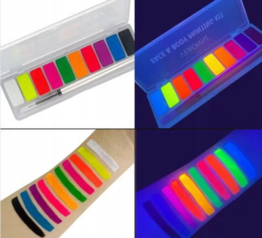 Fluorescencyjne FARBY na dyskotekę Do Malowania Twarzy FARBKI Neonowe UV
