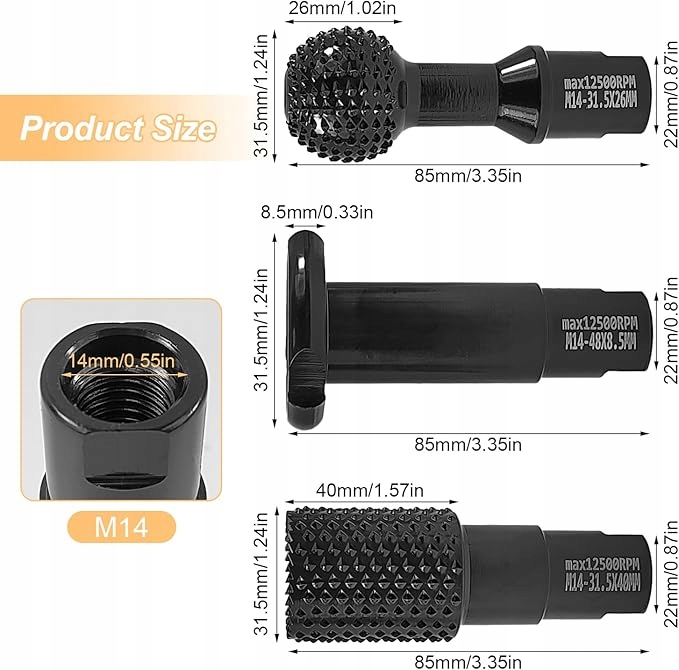 FREZY DO KATÓWKI M14 OTWORNICA GŁOWICA ADAPTER FREZ SZLIFIERKA KĄTOWA 3szt