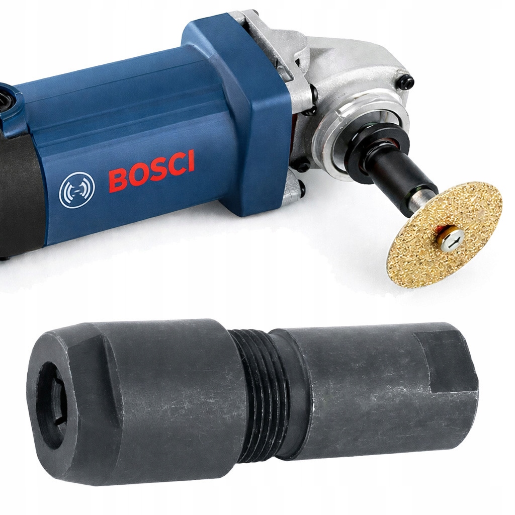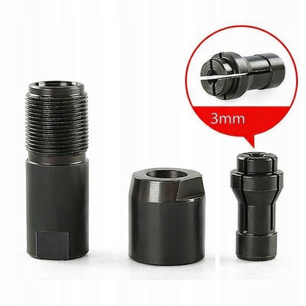 Adapter zaciskowy do szlifierki kątowej umożliwia szybki i stabilny montaż frezów, wierteł, tarcz oraz innych narzędzi na trzpieniu 3 mm.