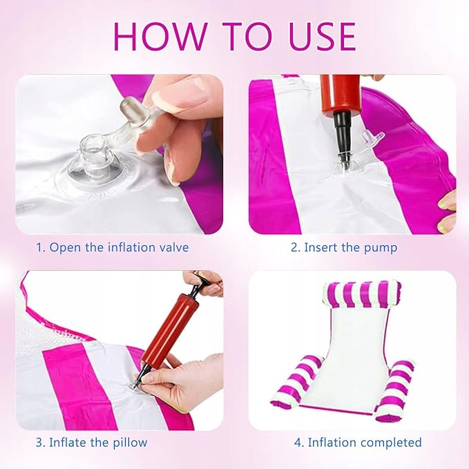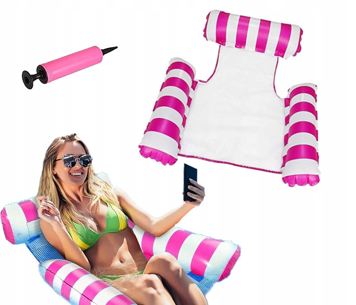 Wielofunkcyjny nadmuchiwany hamak do wody 4w1 może być używany jako: hamak, leżak, drifter i siodełko sportowe.