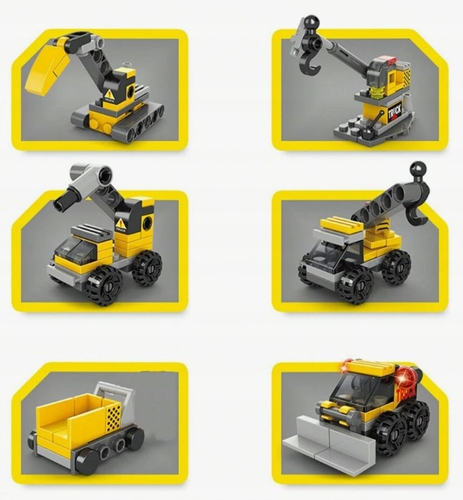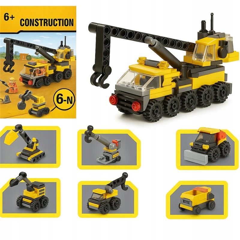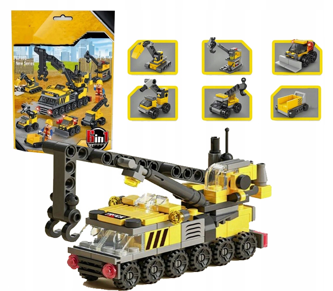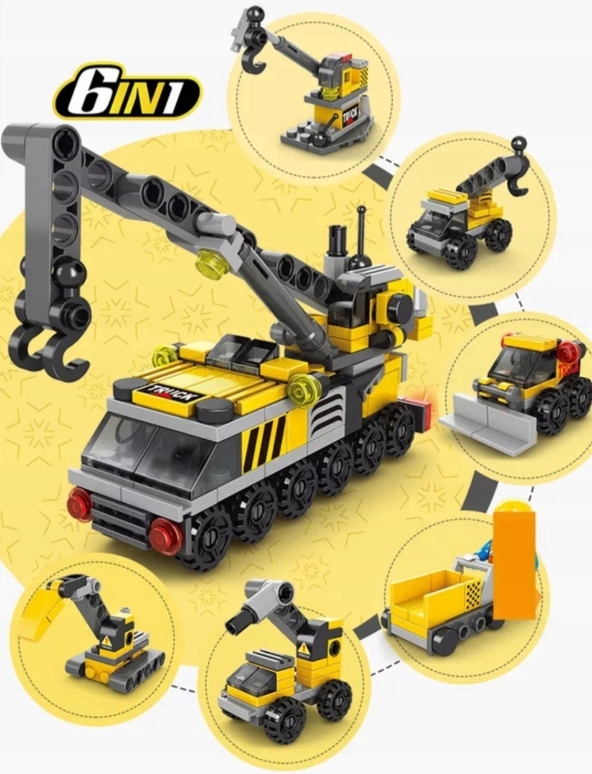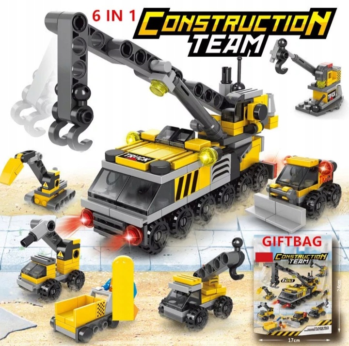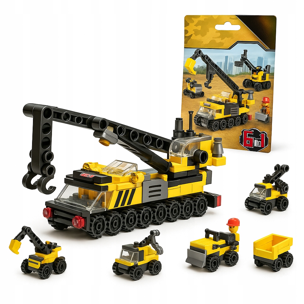 HIT KLOCKI PLAC BUDOWY POJAZDY BUDOWLANE TECHNICZNE BUDOWA zestaw 6w1