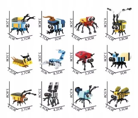 INSEKTY KLOCKI FIGURKI OWADY PUZLE 3D LUDZIKI SUPER BOHATER ZESTAW 12w1