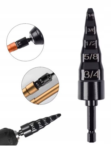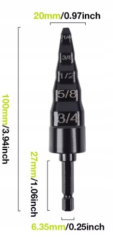 - 3/4″, 3/4″, 5/8″, 1/2″, 3/8″, 1/4″