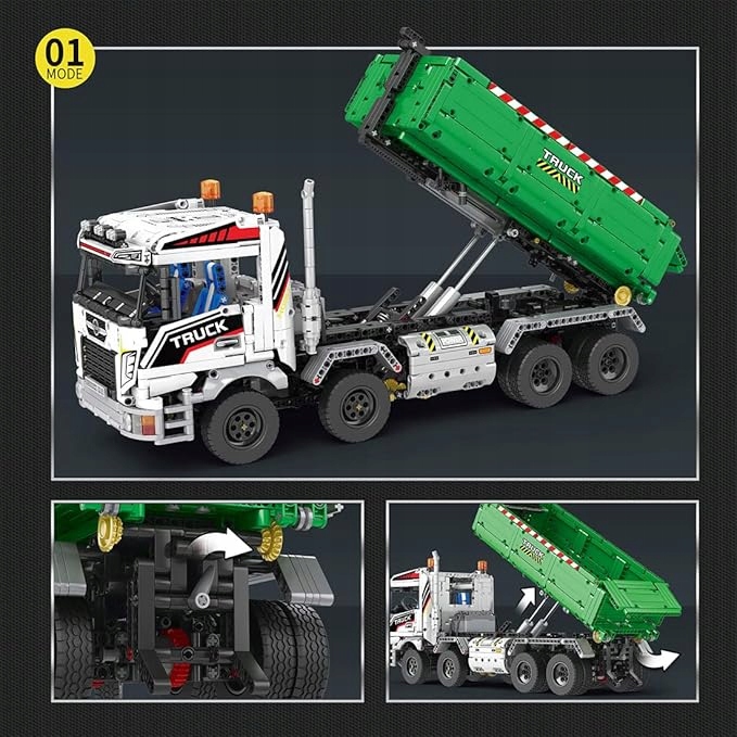 Ciężarówka wyposażony jest w ruchomy KIPER, którą można podnosić i opuszczać, co pozwala na realistyczne przenoszenie różnych materiałów.