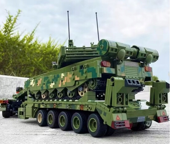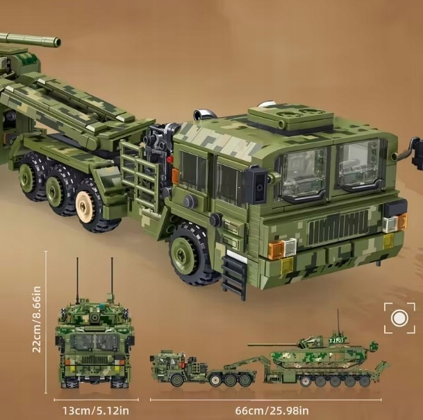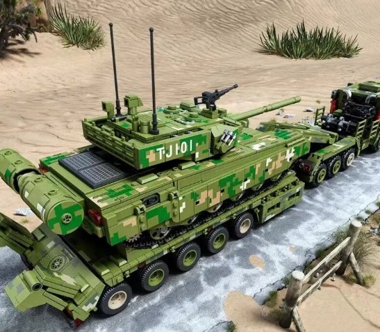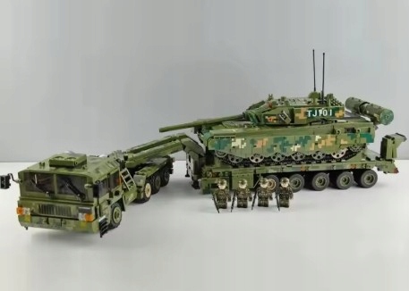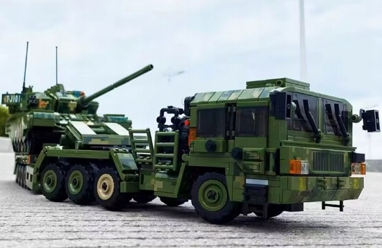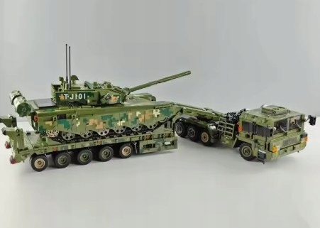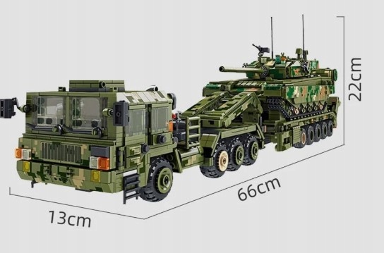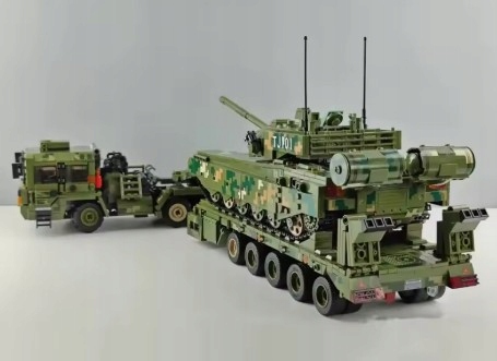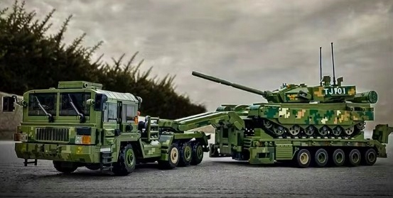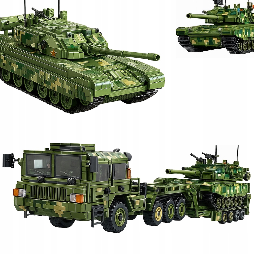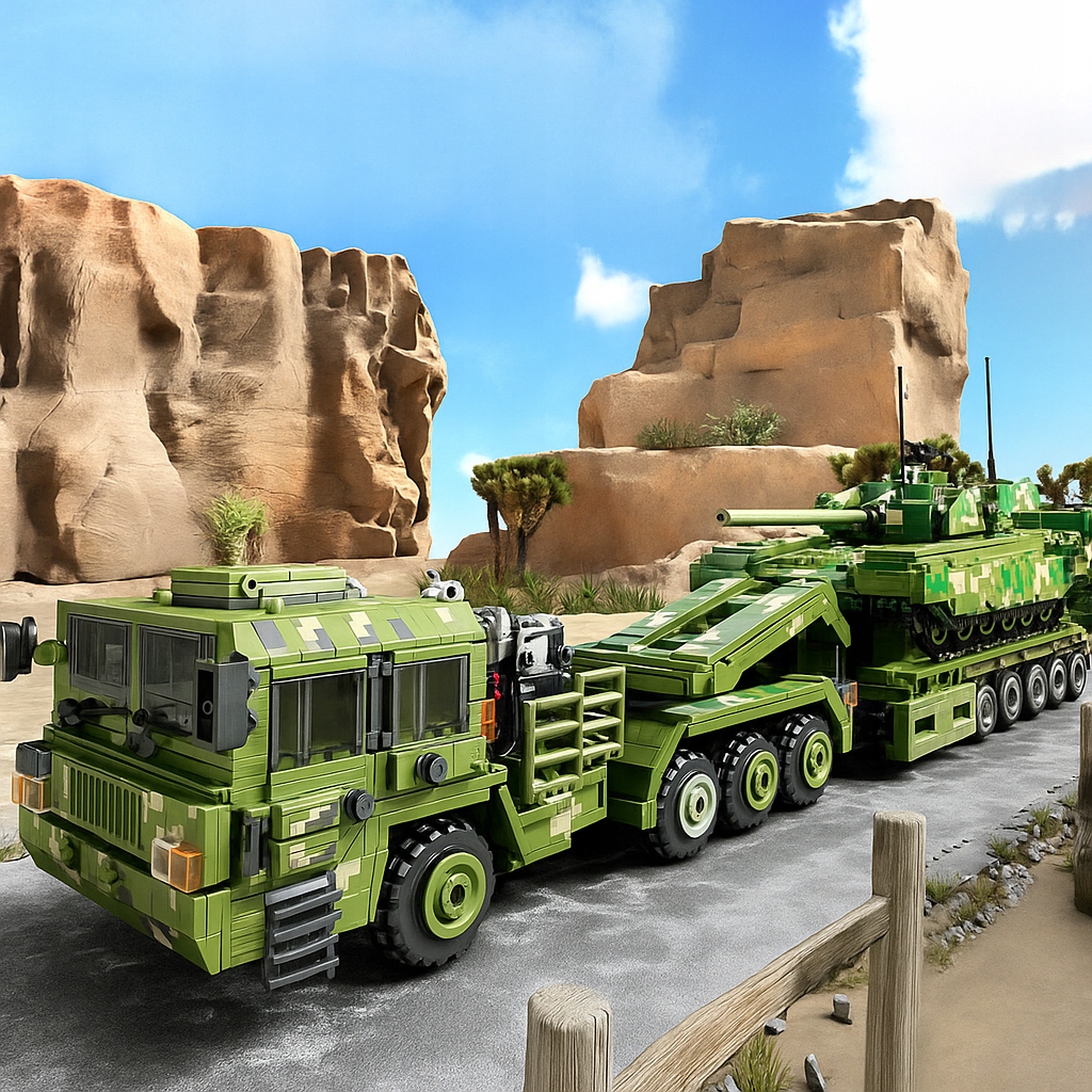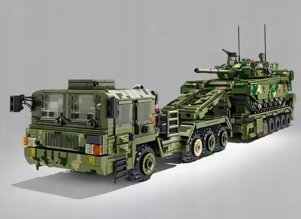 Wejdź do świata realistycznych modeli militarnych z zestawem 99A Tank Transportation – potężnym wojskowym transporterem czołgów, inspirowanym prawdziwymi ciężarówkami do przewozu pojazdów pancernych.