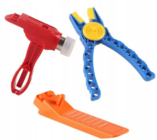 - Ochrona klocków – młotek i szczypce wyposażone w główki silikonowe, które zabezpieczają elementy przed uszkodzeniem.