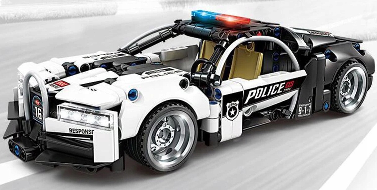 ?Sportowy samochód policyjny z klocków…
