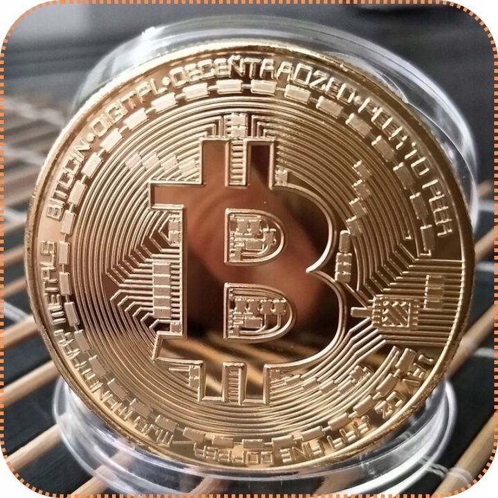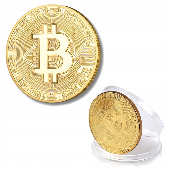 KOLEKCJONERSKA ZŁOTA MONETA BITCOIN DEKORACYJNA BTC NA PREZENT DUŻA 4cm