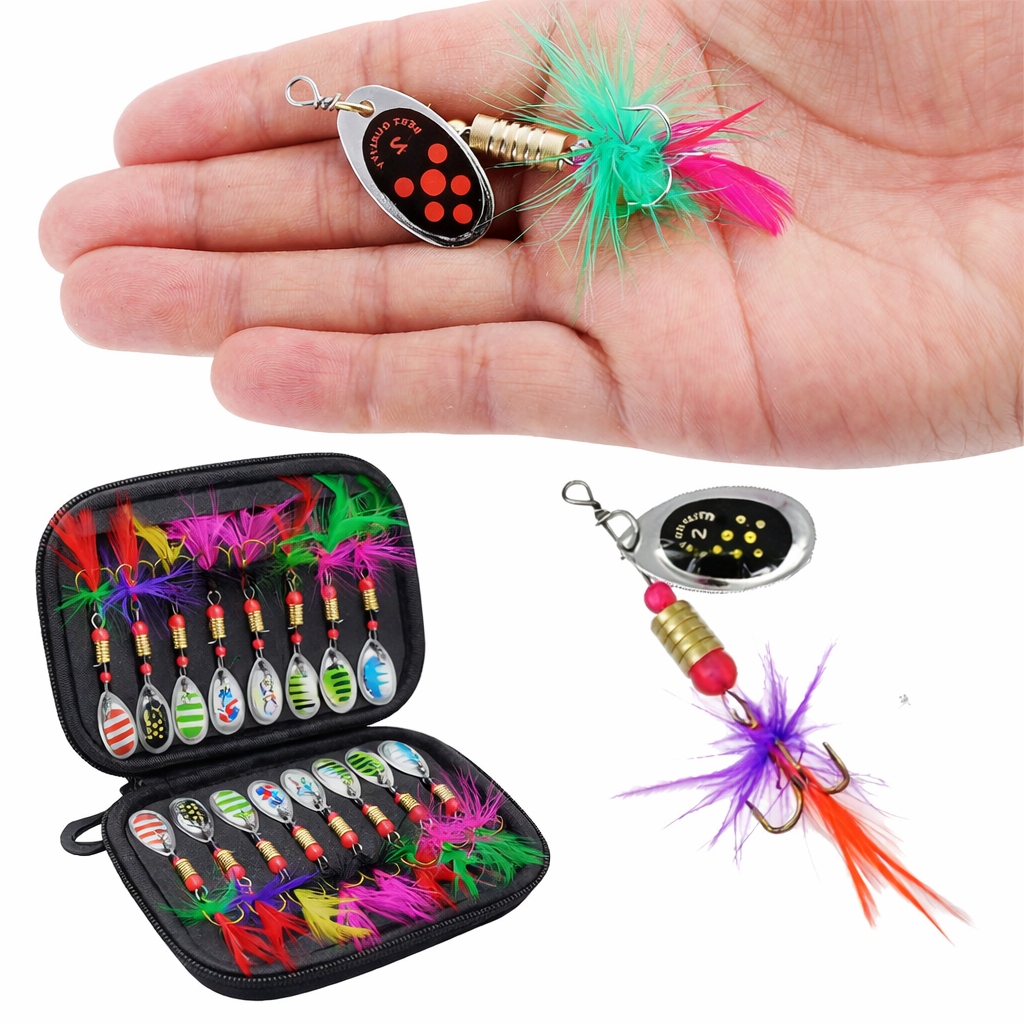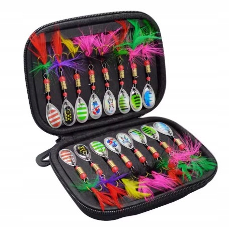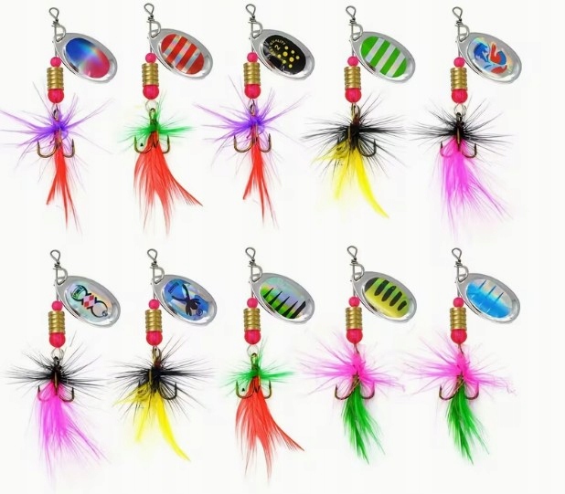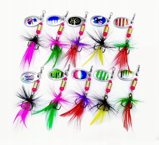 Kolorowe BLACHY Blaszki Błyskotki Obrotowe Na Ryby Zestaw Przynęt Haczyki