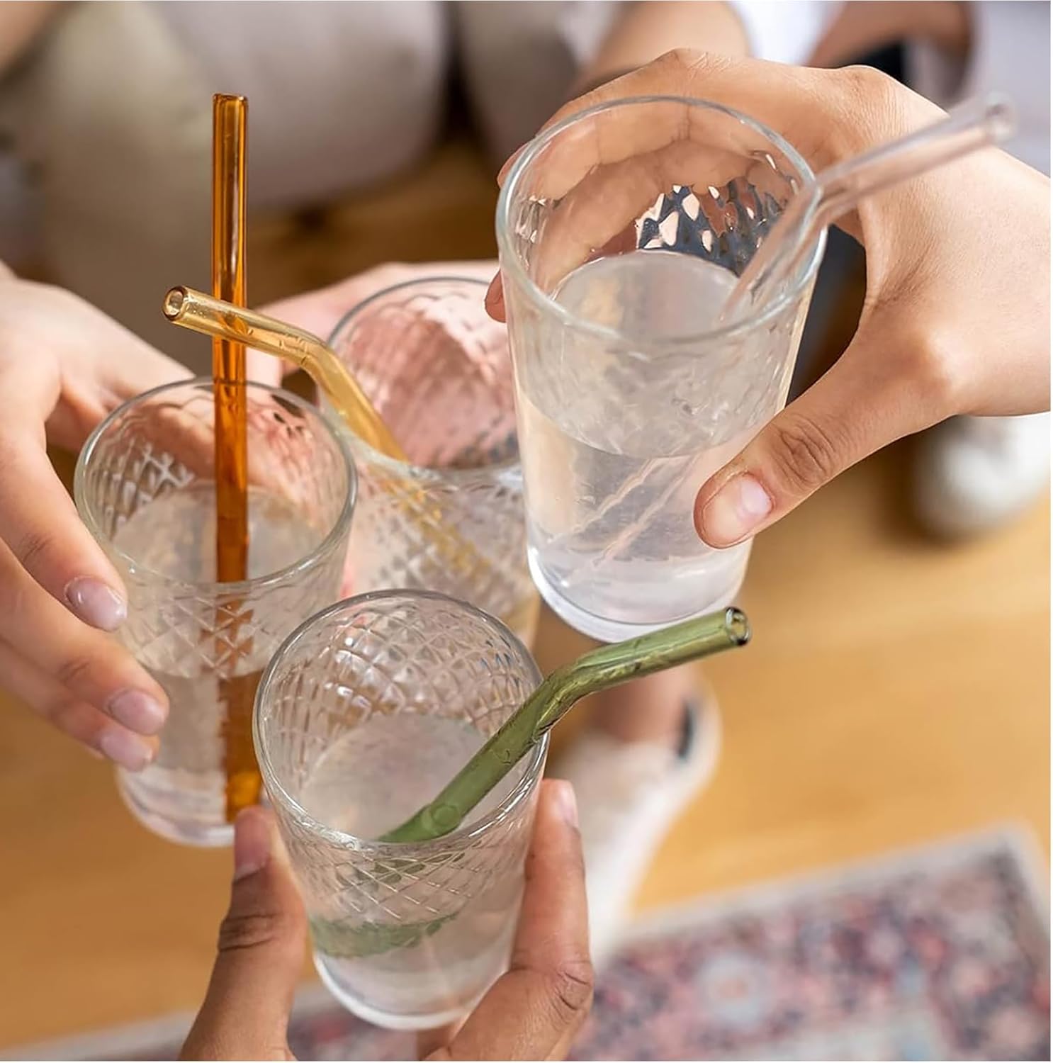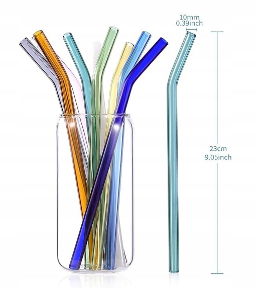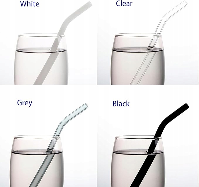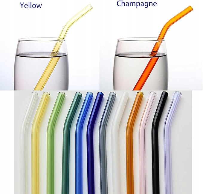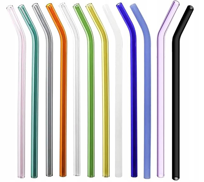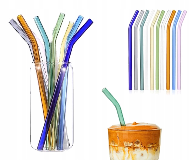 - 12 x kolorowe, szklane słomki (zakrzywione)
