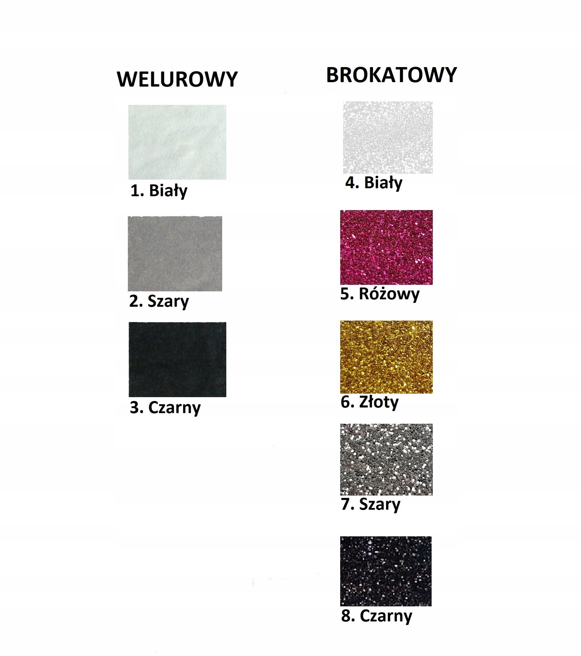 Kolory 4,5,6,7,8 są wykonane na materiale o przepięknie błyszczącej się powierzchni brokatowej.