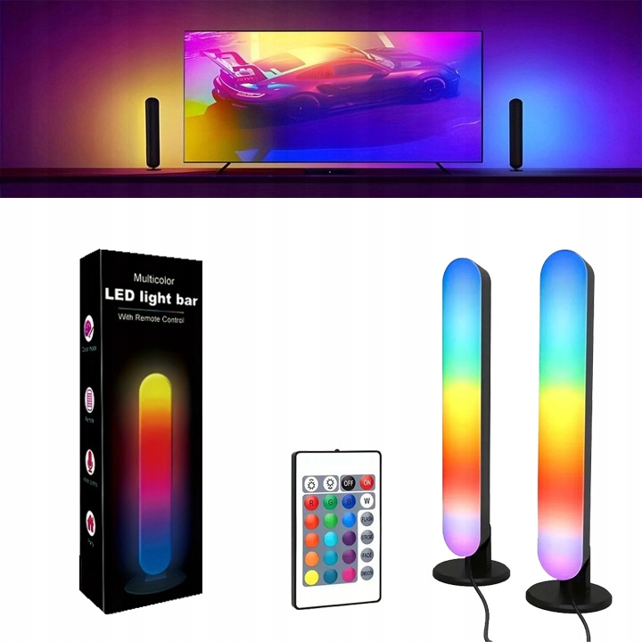 LAMPA LED GAMINGOWA Z PILOTEM LISTWY ŚWIETLNE TV NA BIURKO RGB NEON