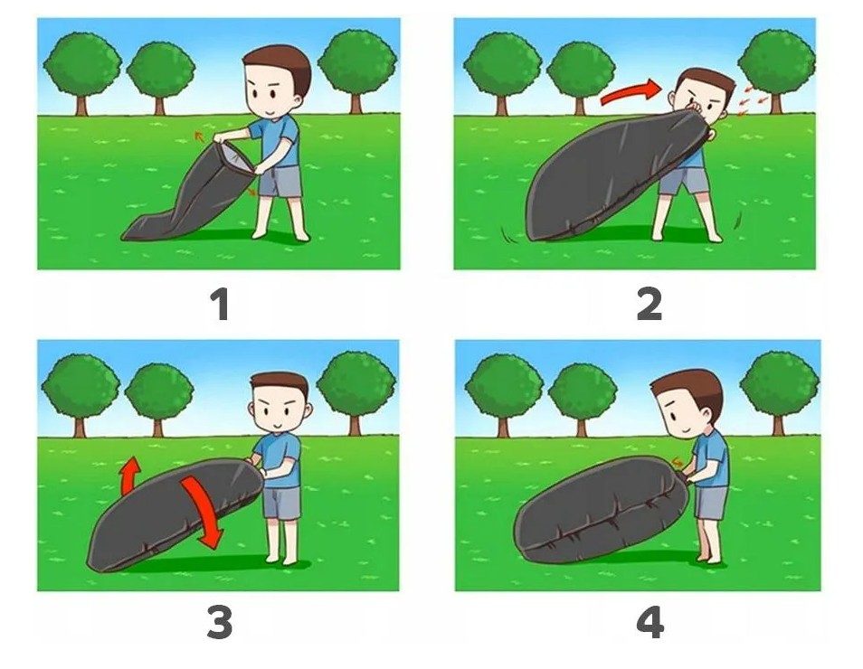 - Zamachnij się leżakiem energicznym aby nabrać powietrze do środka.