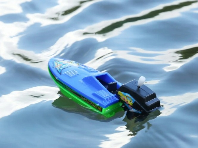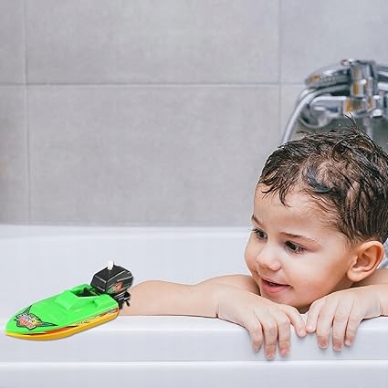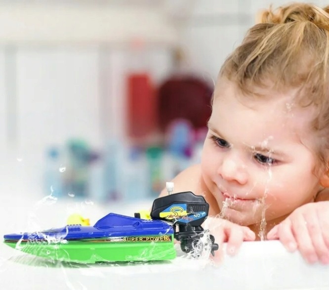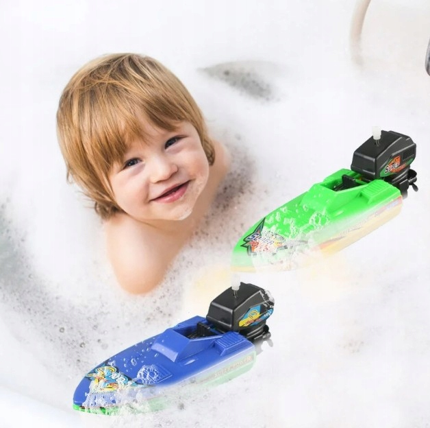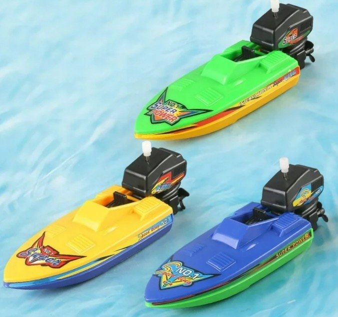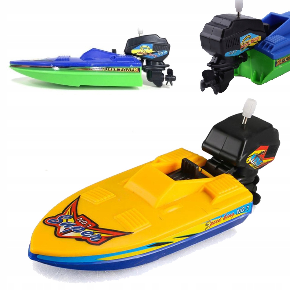 ŁÓDKA MOTORÓWKA NAKRĘCANA SILNIK ZABAWKA DO KOMPIELI WANNY WODY NA BASEN
