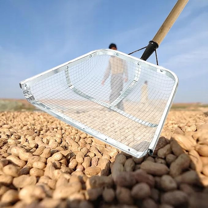 Poznaj żelazne sito–łopatę do przesiewania ziemi, kukurydzy, orzeszków i zbóż.