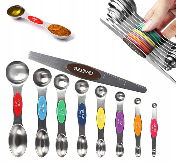 ? Zestaw łyżek miarowych magnetycznych ze stali nierdzewnej – 9 elementów