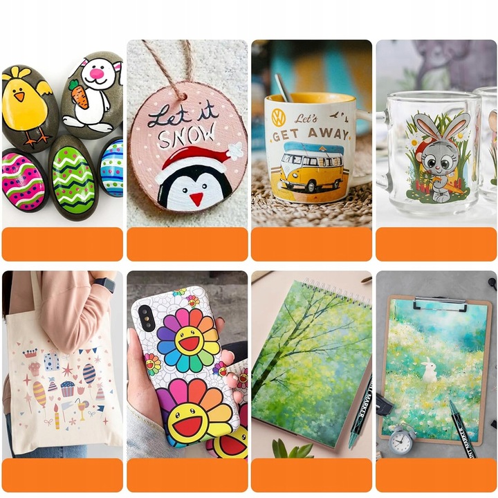 - Dekoracja: nadają się do personalizacji takich przedmiotów jak kubki, torby, tkaniny, ceramika i szkło.