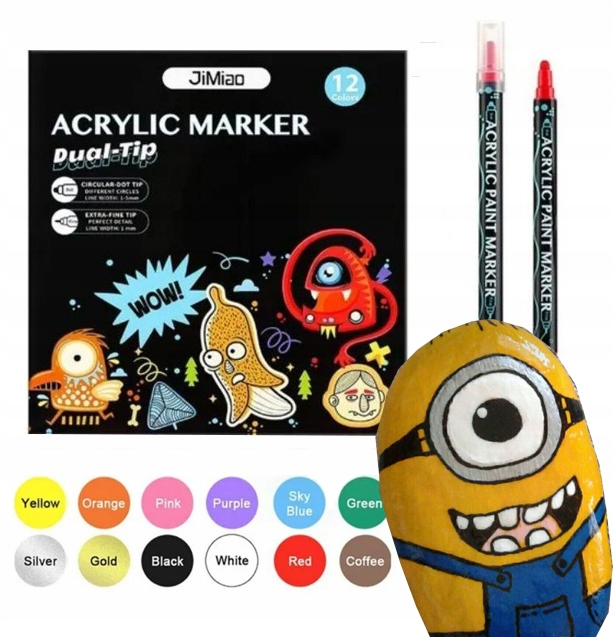 MARKERY KAMYCZEK DWUSTRONNE AKRYLOWE PISAKI MAZAKI FLAMASTRY KAMIENIE 12szt