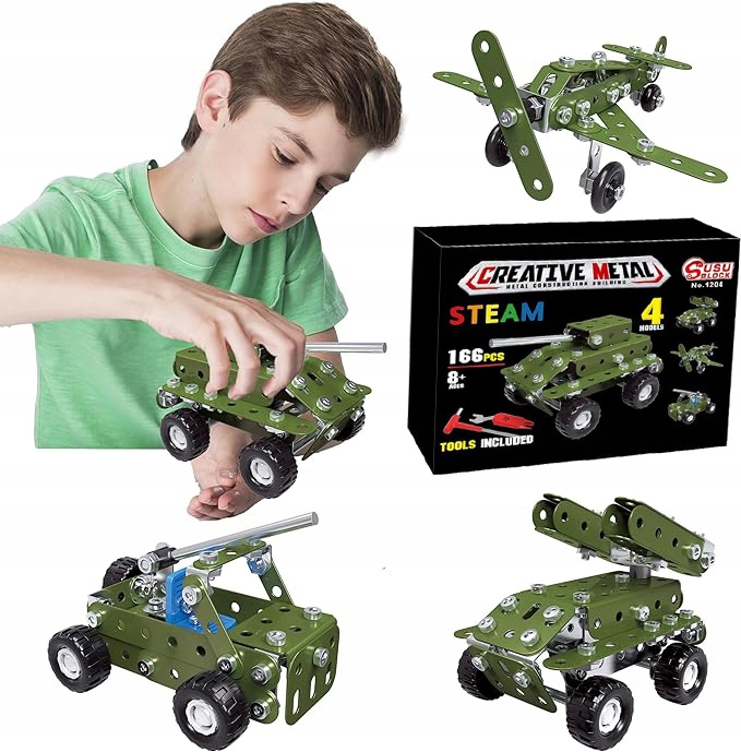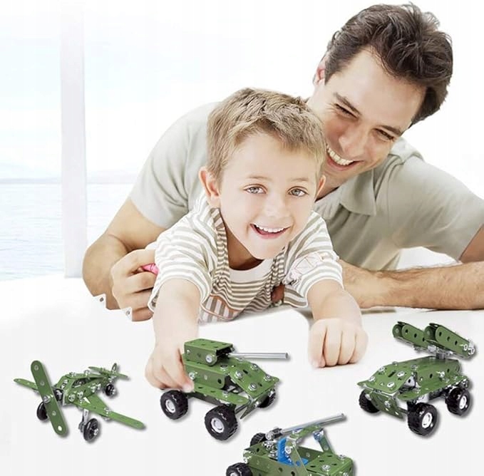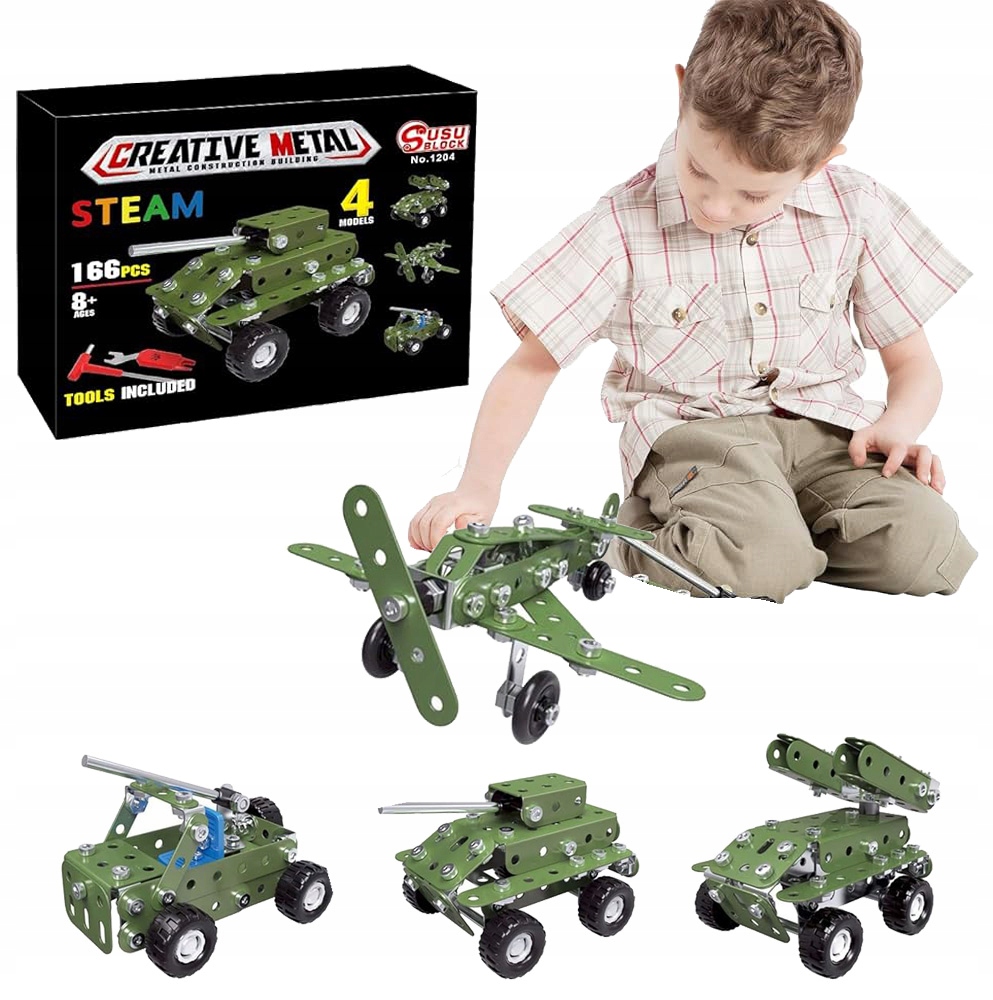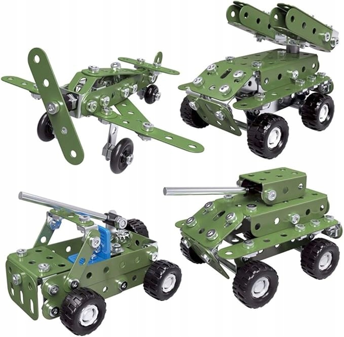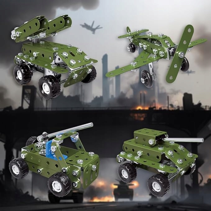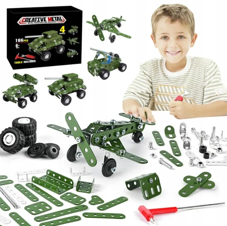 METALOWE KLOCKI KONSTRUKCYJNE BLASZKI ŚRUBKI ZABAWKA TECHNICZNA WOJSKO 166