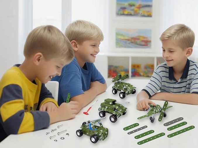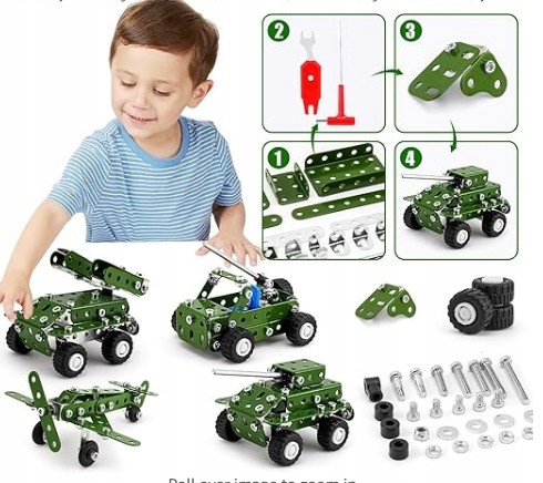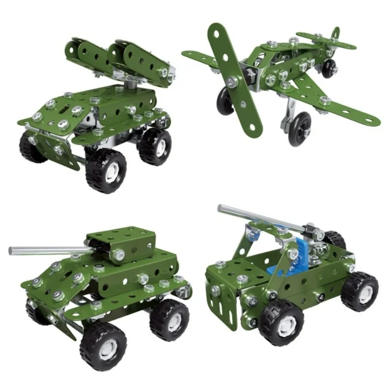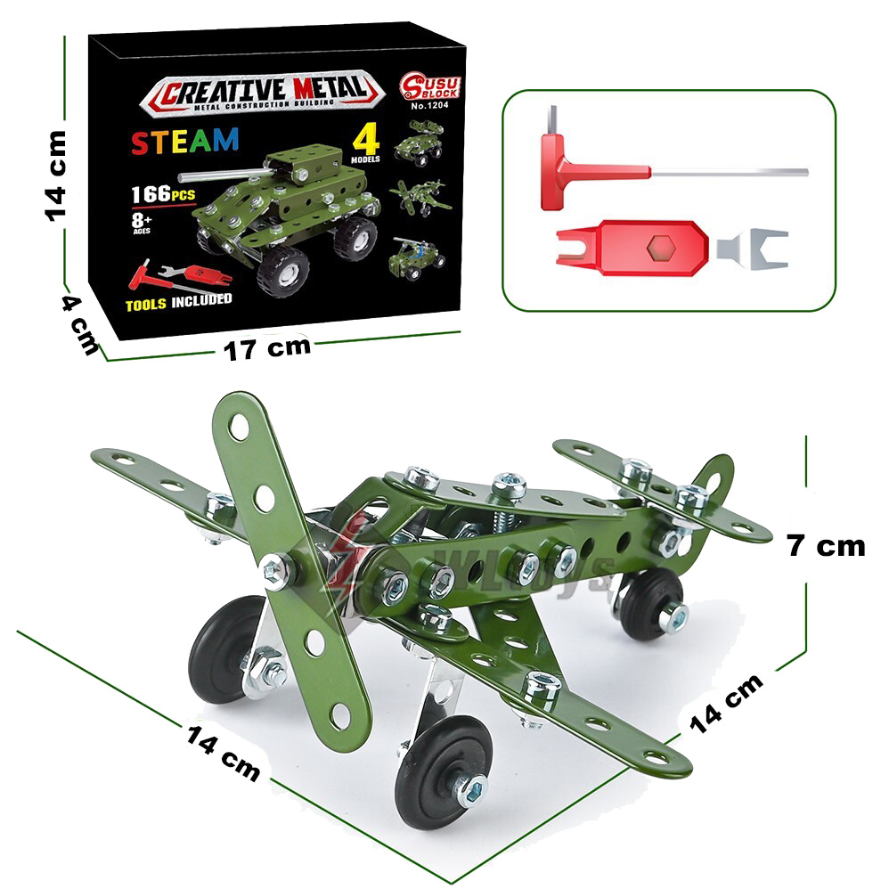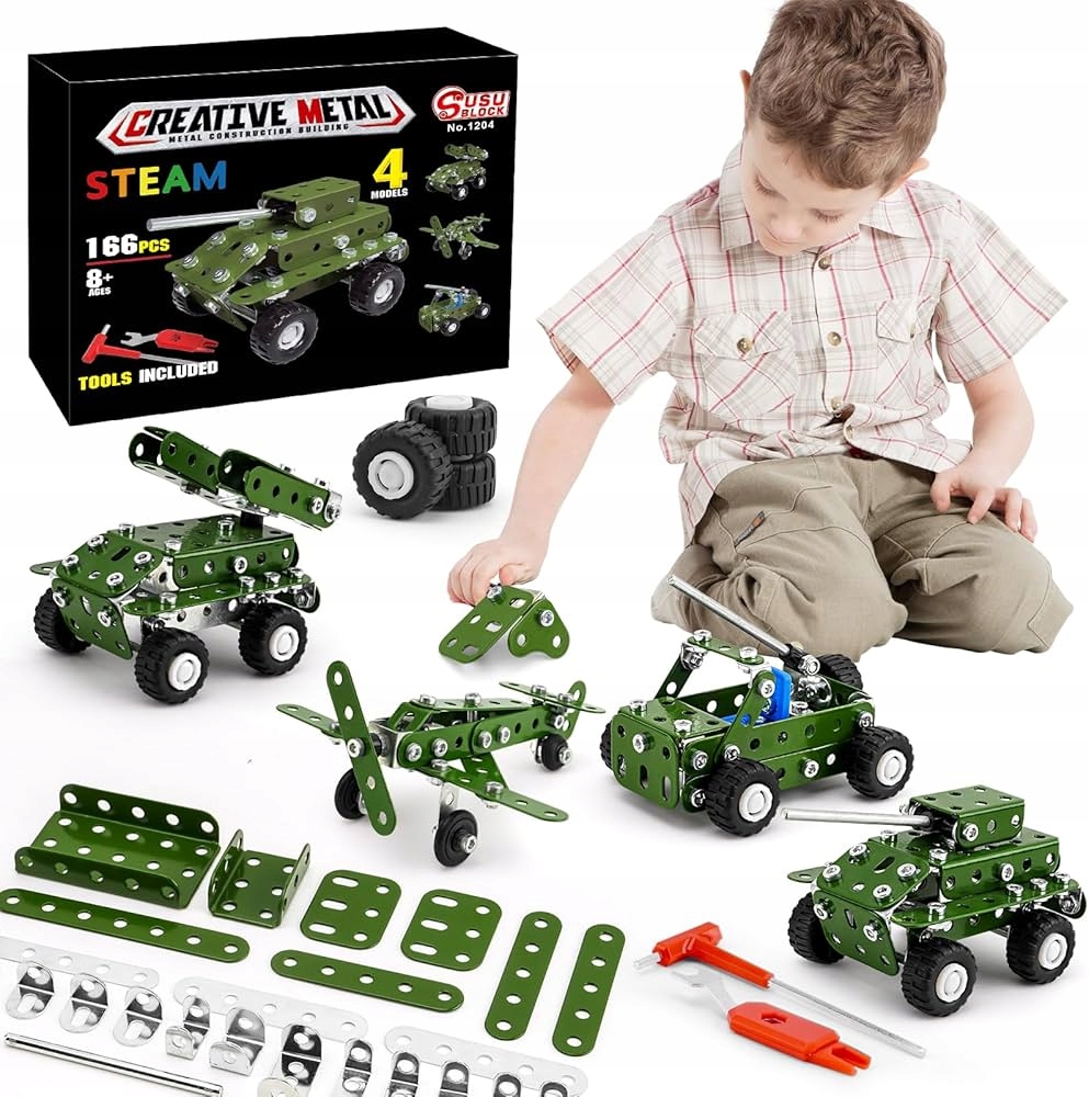 METALOWE KLOCKI KONSTRUKCYJNE BLASZKI ŚRUBKI ZABAWKA TECHNICZNA WOJSKO 166