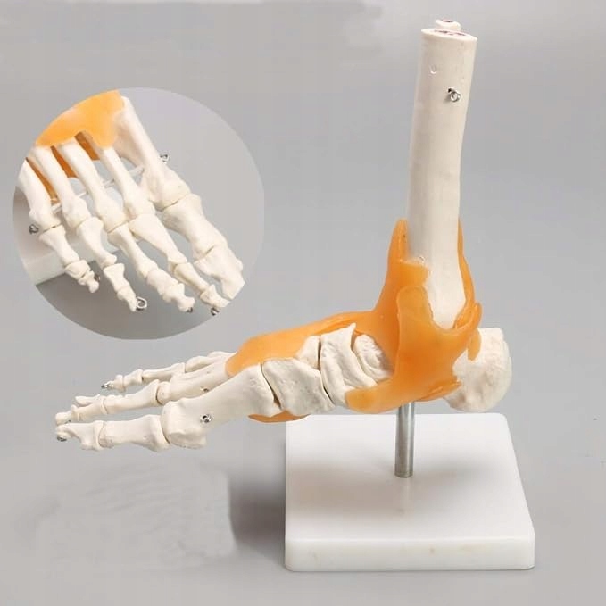 Model 3D stopy człowieka w skali 1:1 to doskonała pomoc dydaktyczna i edukacyjna, która wiernie odwzorowuje strukturę kości i więzadeł stawu skokowego.