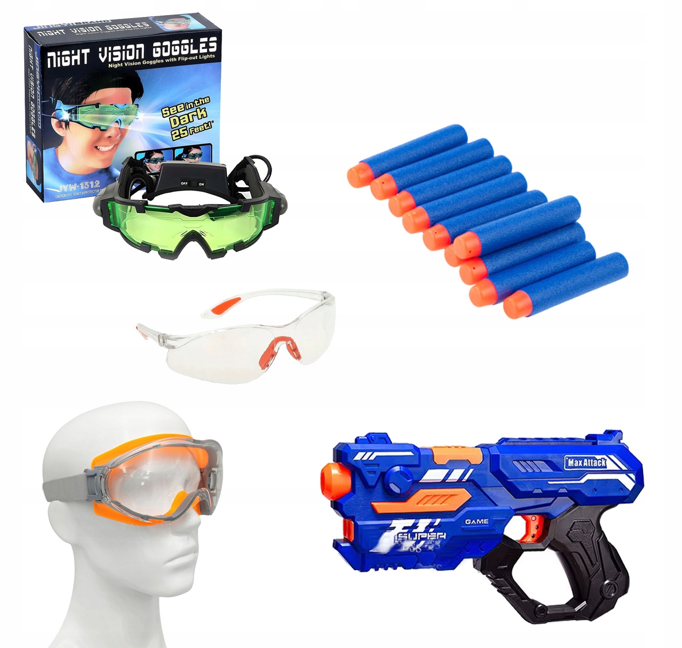 znajdziesz kompatybilne akcesoria do tego typu zabawek, takie jak okulary ochronne, pisto0lety, dodatkowa amunicja oraz inne elementy uzupełniające zestaw.
