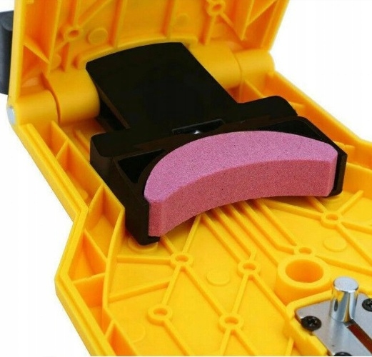 - Uruchom piłę i dociśnij, aż dotknie kamienia ostrzącego na 3s-5s