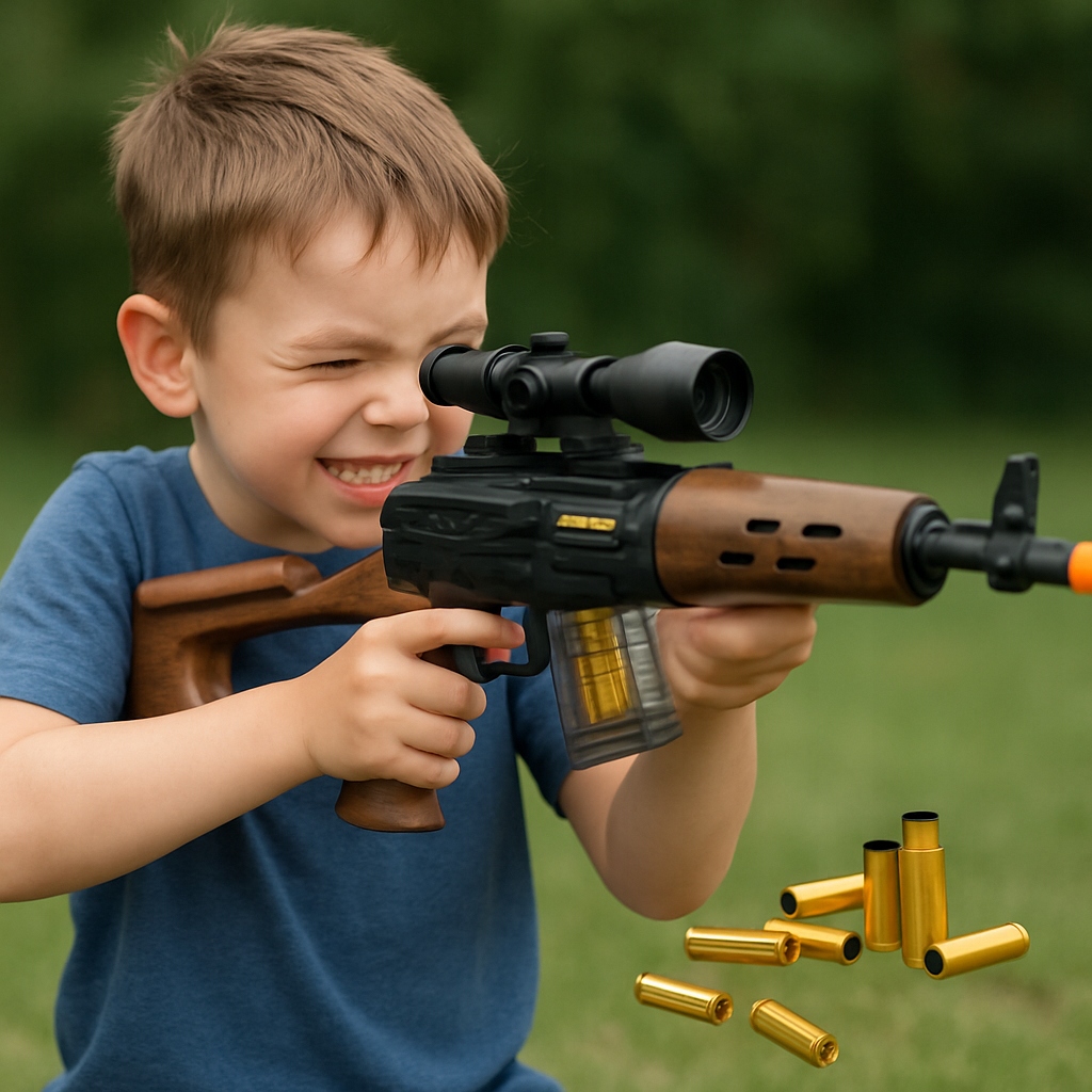 BROŃ łączy bezpieczną zabawę z realistycznymi efektami, dzięki miękkim strzałkom i mechanicznemu wyrzutowi łusek. Jest lekki, łatwy w obsłudze i idealny do domu oraz na zewnątrz. Rozwija celność, koordynację i zachęca do aktywnej zabawy. Duży zestaw strzałek zapewnia długą rozgrywkę, a solidne wykonanie sprawia, że to świetny prezent dla dzieci.