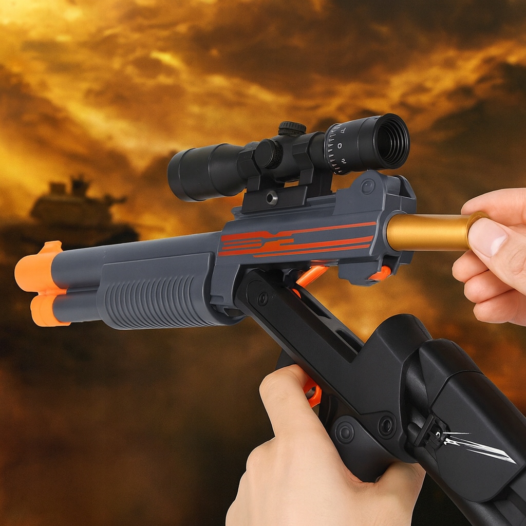 Bezpieczny i niezwykle wciągający karabin-zabawka na miękkie pociski, gwarantujący godziny świetnej zabawy w domu i na świeżym powietrzu.