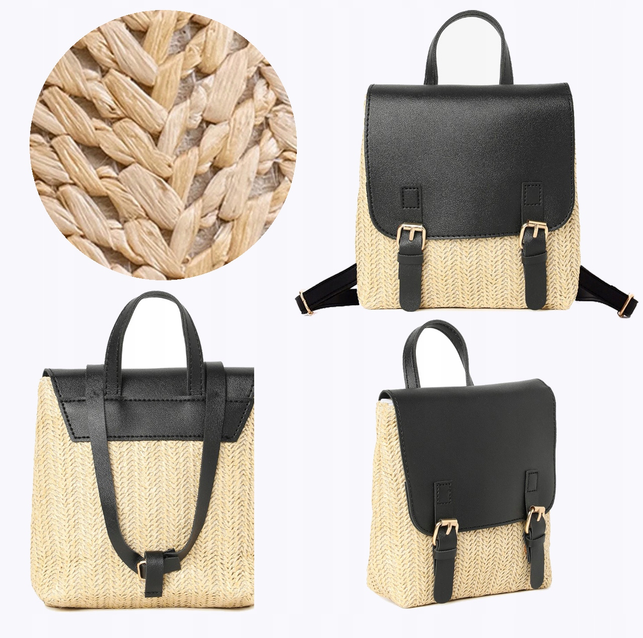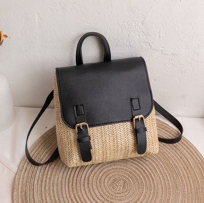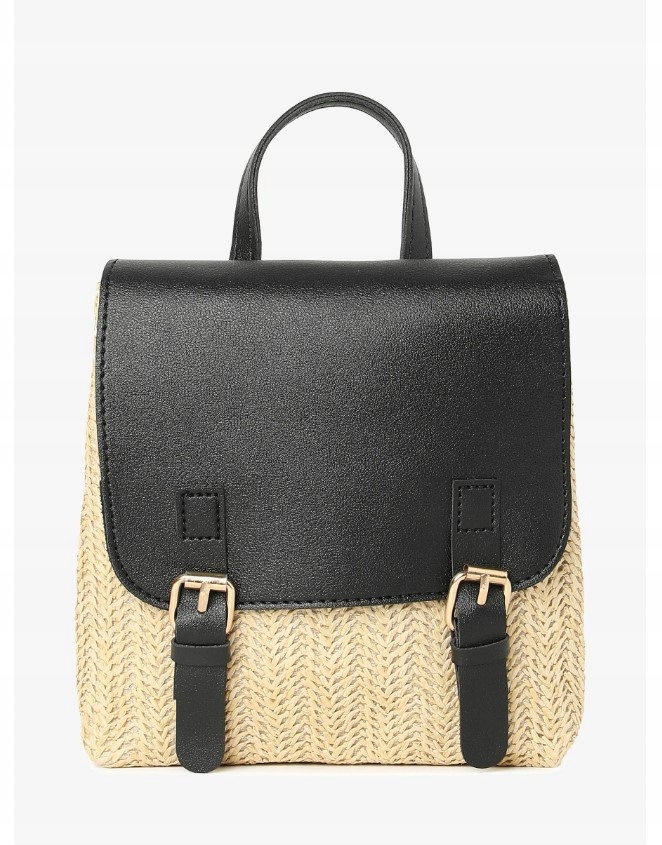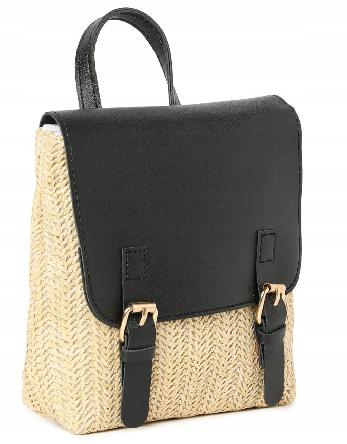 PLECAK WIKLINOWY SŁOMIANY TORBA BOHO PLECIONY DAMSKI DZIEWCZĘCY CZARNY