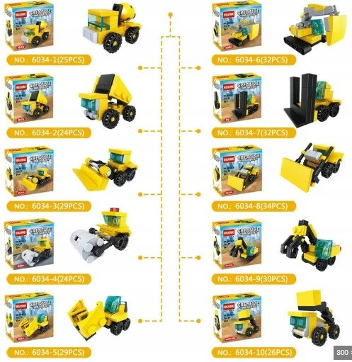 POJAZDY BUDOWLANE SPRZĘTY TECHNICZNE BUDOWA KOPARKA KLOCKI SAMOCHÓD 10