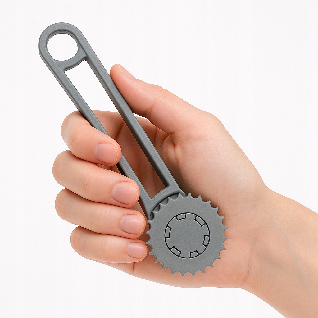 - Konstrukcja: Ergonomiczny uchwyt + obrotowe ząbkowane kółko