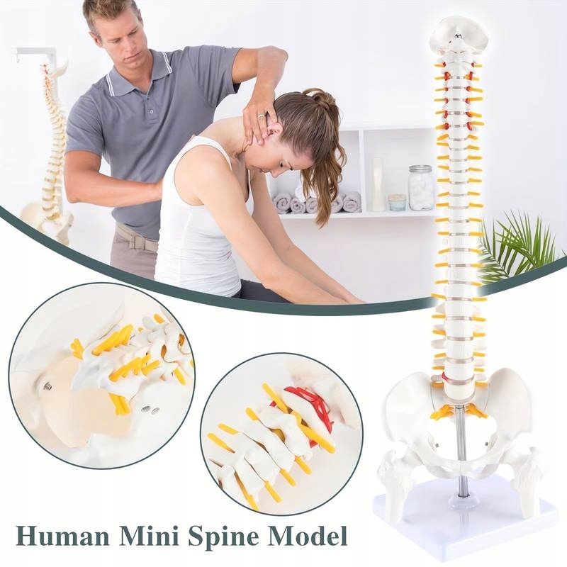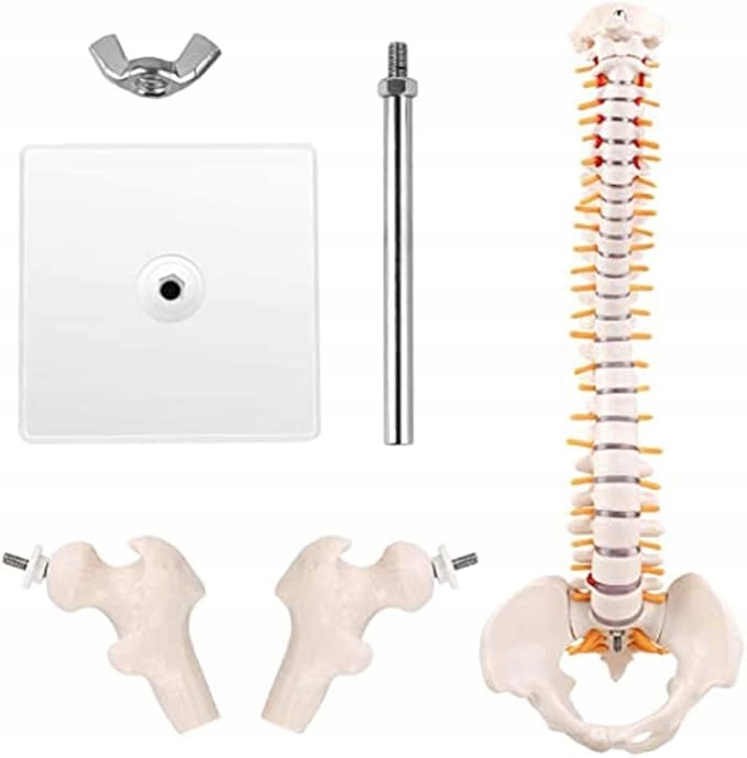 Model przedstawiający kręgosłup wraz z miednicą powstał jako pomoc dydaktyczna do nauki anatomii ludzkiego ciała. Okaże się on nieocenionym wyposażeniem uniwersytetów, placówek badawczych oraz laboratoriów. Pomoże także studentom lub uczniom lepiej zrozumieć budowę szkieletu czy przygotować się do egzaminu. Ponadto dzięki praktycznemu stojakowi posłuży jako model poglądowy w gabinecie ortopedy, położnej, fizjoterapeuty lub akupunkturzysty.