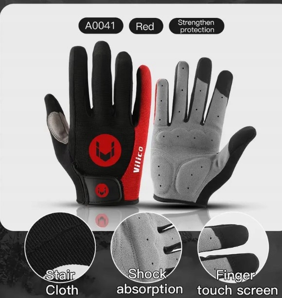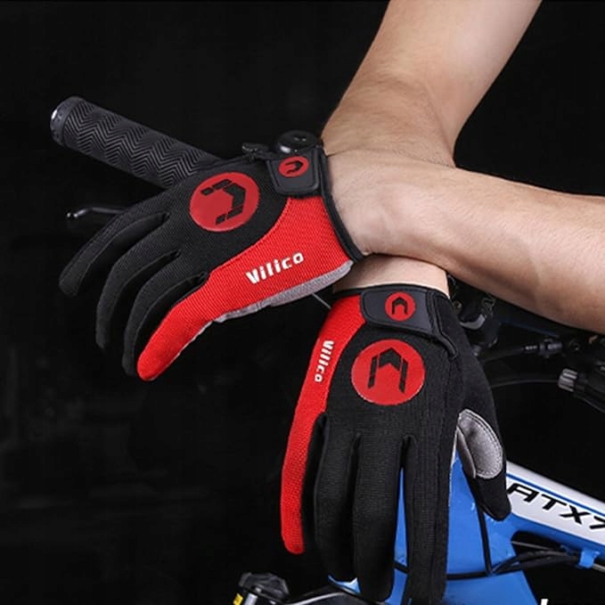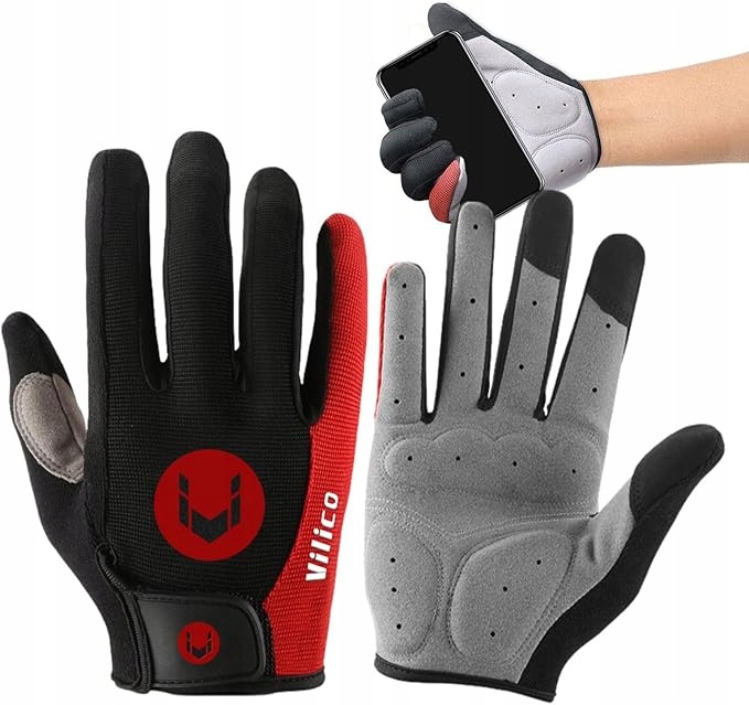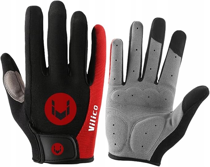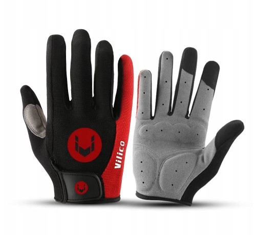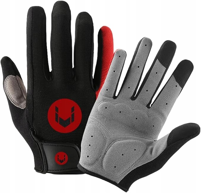 RĘKAWICZKI SPORTOWE NA ROWER KIJKI DŁUGIE PALCE RĘKAWICE CZARNE CZERWONE
