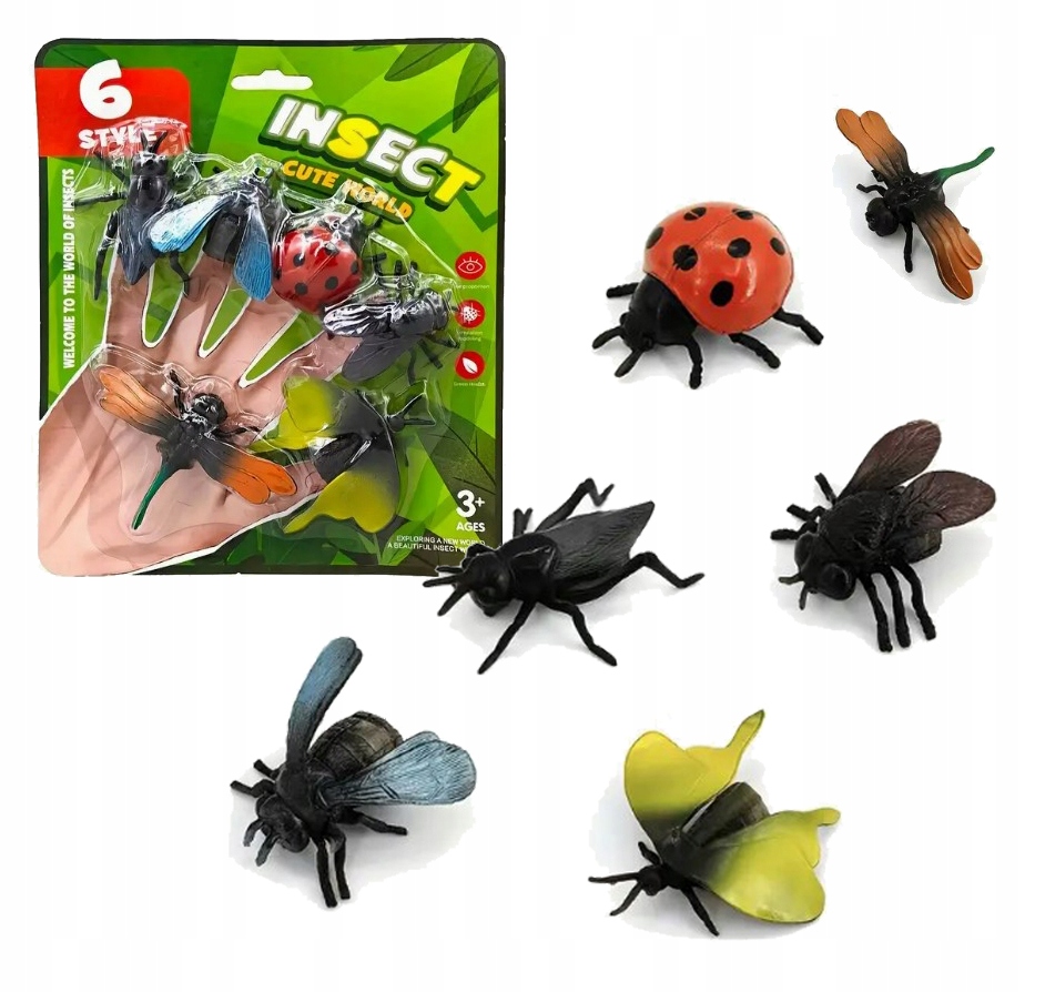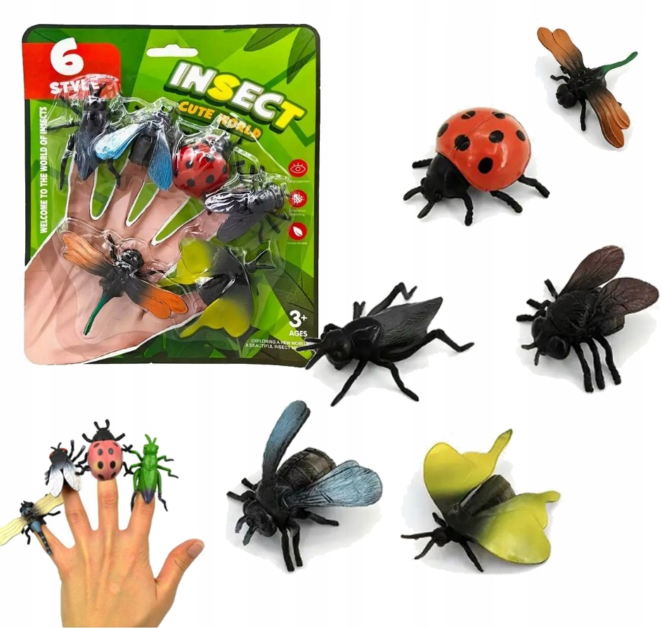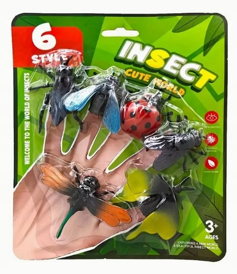 ROBALE OWADY INSEKTY FIGURKI NA PALCE DO ZABAWY ZABAWKA KOMPLET 6szt