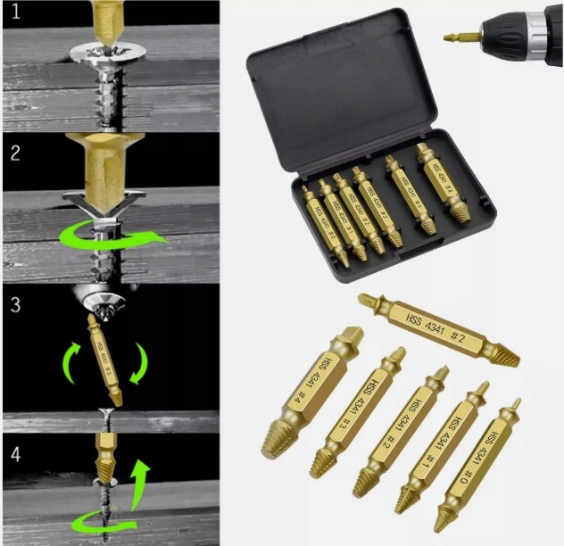 ROZWIERTAKI WYKRĘTAKI WIERTŁO FREZ DO URAWNYCH ŚRUB komplet BITY 6 szt.