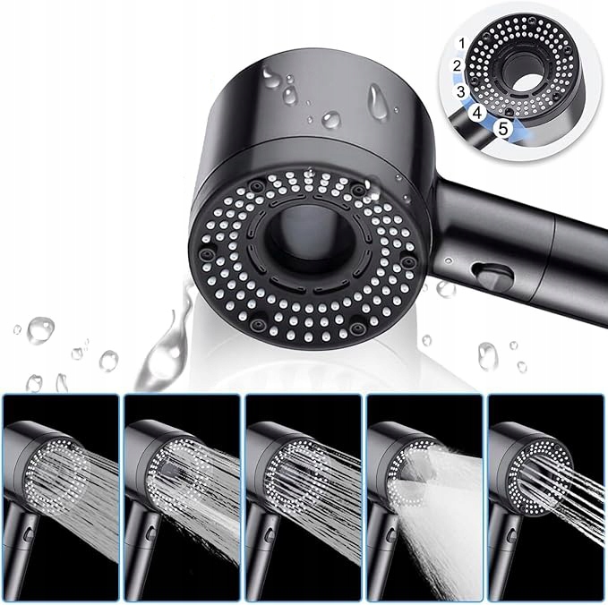 ✅ 5 trybów natrysku – od delikatnego deszczu po energetyzujący masaż wodny. Idealna na poranny zastrzyk energii i wieczorny relaks.
