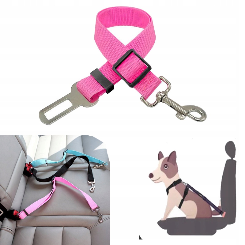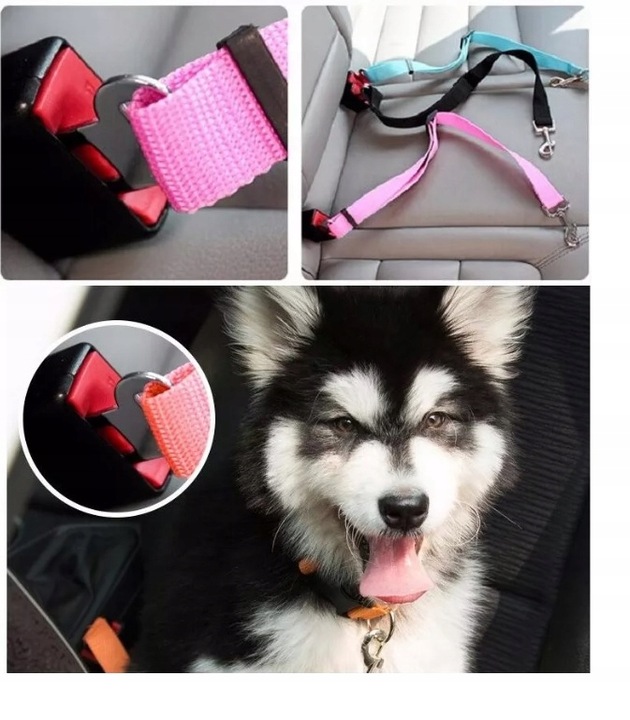 Pas bezpieczeństwa pozwala w bezpieczny sposób podróżować z psem na tylnym siedzeniu bez konieczności instalowania kratki działowej. Pas przypinany jest do szelek samochodowych lub obroży za pomocą karabińczyka.