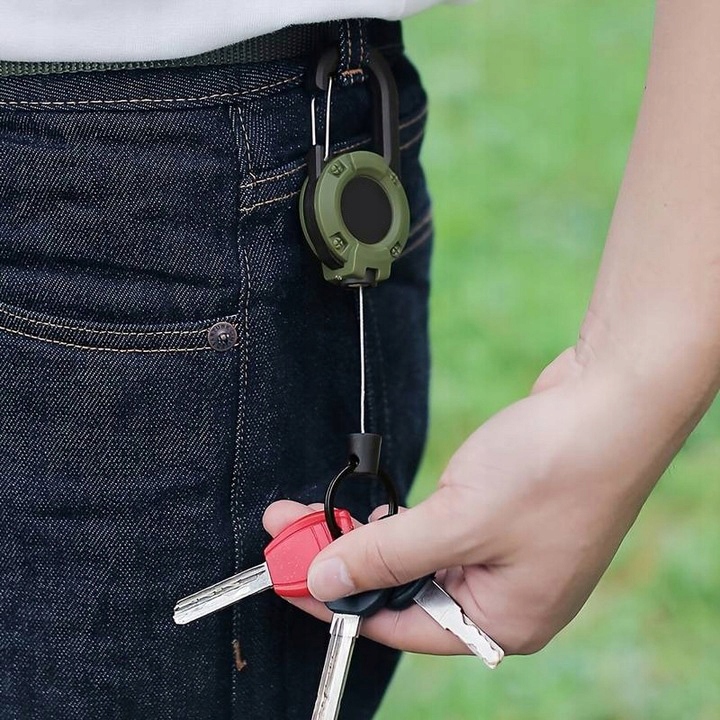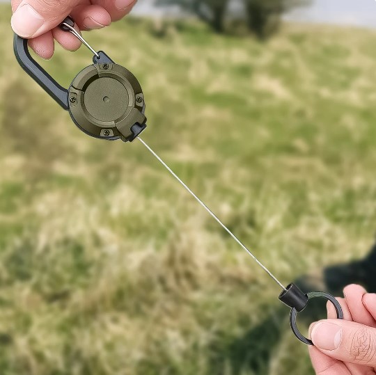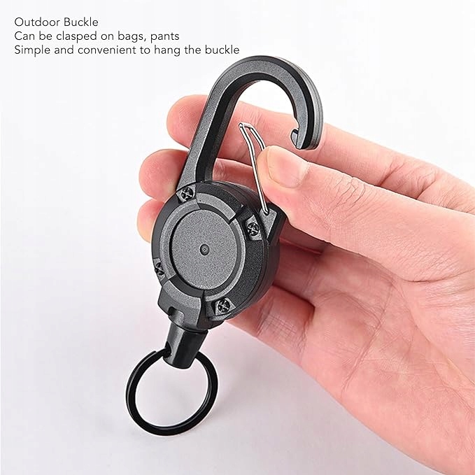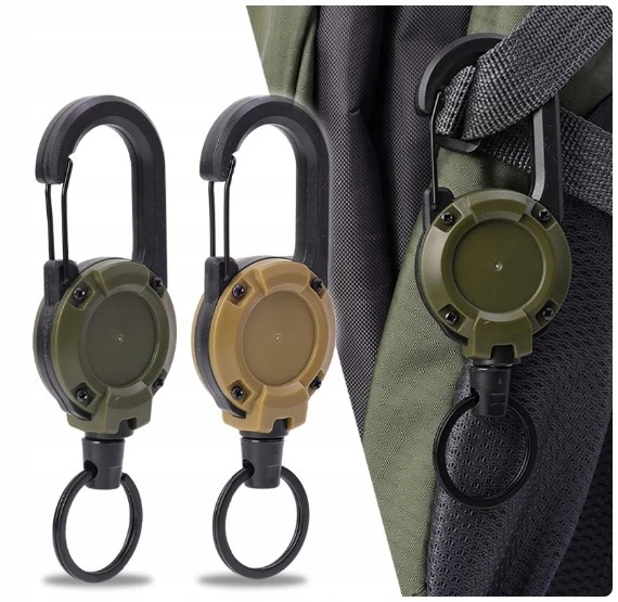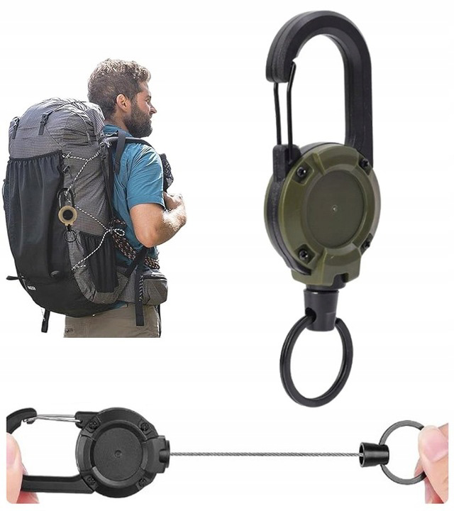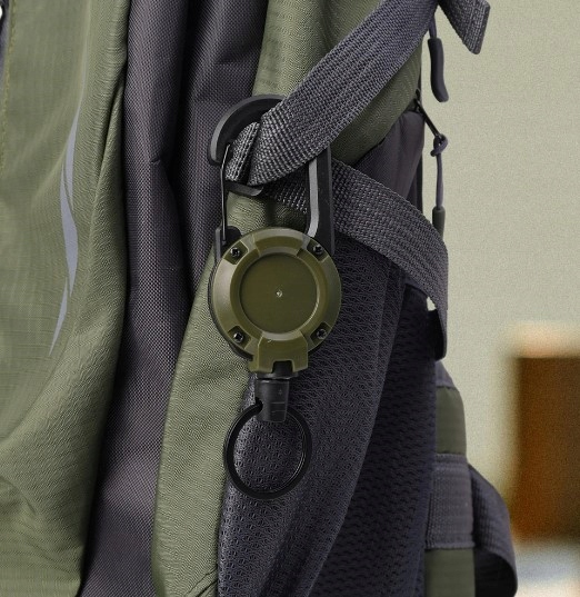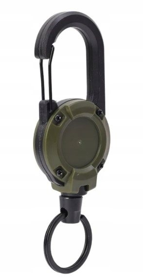 Do montażu retraktora służy duży zintegrowany karabińczyk, jego zastosowanie pozwala na szybkie i łatwe zaczepienie tego modelu na szlufkach oporządzenia, pasku torby lub troku plecaka.